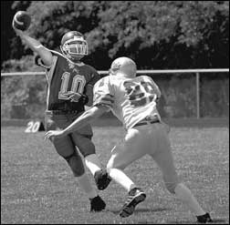 Though the Yellow Springs High School football team suffered a year of atrophy last season with only 14 players, the return of longtime coach Jerome Crosswhite seems to have attracted a roster for 2003 that is full of hungry players. The home team ate up a good many yards during Saturday’s home opener against Vanlue High School. And though the Bulldogs lost 9–34, the team showed vast improvement over last year. Anthony Brandon initially appeared to get the ’Dogs off to a great start when he returned the opening kickoff 95 yards for the touchdown. The score was nullified, however, when the Bulldogs were penalized for clipping. Nevertheless, the play set the tone for the first half. The YSHS defense started well, as Jordan Skinner got an interception, and the Bulldogs held Vanlue to one touchdown. The Bulldogs got on the board in the second quarter when Skinner scored on a 45-yard pass from quarterback Jacob Fulton. Kicker Aaron Zagory later hit a 35-yard field goal, as the Bulldogs went into halftime with a 9–7 lead. But rest isn’t always good for the team with momentum. In the second half, the Bulldogs’ pass protection began to break down, and Fulton had trouble connecting with his receivers. “In the first half we showed we can be there,” Crosswhite said after the game. “But in the second half it was a combination of a mental breakdown and the other team running us down. We have to work on finishing the game, finishing all four quarters.” Though the chances of coming back from an 18-point lag in the fourth quarter looked grim, the Bulldogs were committed to their motto to “finish strong.” Aaron Cobb finished the game with five quarterback sacks and five tackles. Unlike last year, when several games were canceled, because the team was so small, the Bulldogs have a full schedule this fall and will look for the first win of the season this Friday, Aug. 29, when YSHS travels to Waynesville-Goshen. —Lauren Heaton
