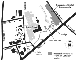 Council considers installing traffic signal at 68 and 343 Village Council is considering whether to follow an engineering recommendation to install a traffic signal at U.S. 68, State Route 343 and Cemetery Street. At the same time, Council is also contemplating whether to pursue a project to improve the Cemetery Street parking lot and connect it to the bikepath with a bike spur, which would run through the Bryan Community Center’s front lawn. The traffic signal recommendation was part of a study of the U.S. 68 corridor, conducted by TEC Engineering of Cincinnati and funded by a $14,750 grant from the Ohio Department of Public Safety. TEC, which released its study last month, offered several other recommendations, including installing left turn lanes at 68 and Corry; reducing some on-street parking near Xenia Avenue’s intersections; and installing better parking signs around town. If the Village decides to install a traffic light at 343 and 68, it would try to do so as part of a project that will upgrade traffic lights in Yellow Springs. Funded by a $415,000 grant from the state and the Miami Valley Regional Planning Commission (MVRPC), the larger signal project will replace traffic lights on Xenia Avenue at Corry, Limestone and South College Streets, and at Dayton and Walnut Streets. While the grant also includes a light at Corry and Dayton, the Village found that a signal is not needed there, and instead wants to keep using stop signs at the intersection. The signals are expected to be installed in late 2004 or early 2005. At its meeting Oct. 6, Council discussed the traffic light and the Cemetery Street parking lot projects, but deferred making a decision on either until its next meeting Oct. 20, in favor of receiving more community input. In its 96-page study, TEC said that the intersection of 68, Cemetery and 343 is considered safe. The firm also reported that community members have expressed concern about “excessive delays and safety” at the intersection, especially on Sundays, when traffic from Glen Helen and John Bryan State Park can back up on 343 as vehicles try to turn left. Council member Joan Horn, who used to be the director of the Glen’s Outdoor Education Center, which is located off 343, said that placing a light at the intersection was “long overdue.” Mike Reichert, who has lived at 343 and 68 for 12 years, said that he opposed installing a light at the intersection. He said a traffic light would not alleviate traffic backups, which he called “manageable,” and would “be extremely detrimental for my property on the corner as well as my quality of life.” He also said that local residents “should know enough to stay away from that intersection.” Though not directly tied to the 68 study or the traffic signal grant, the “Northern Gateway” project is finally receiving attention from Council, thanks to an available state grant that MVRPC would distribute. The project is estimated to cost $350,000, of which the Village would have to pay 30 percent, or about $110,000. This possible expense did make some Council members pause. Council president Tony Arnett, for instance, questioned whether the Village could afford its share of the project. Council is considering whether the Village should apply for the grant, which would be due in mid-November. After the meeting, Village Manager Rob Hillard said that he thinks the Village has a good chance of receiving the grant. The gateway project, which was developed by the Northern Gateway/Bicycle Enhancement Committee, a subcommittee of the Village Planning Commission, would include improving the Cemetery Street parking lot and connecting it to downtown with a bike spur. The lot would include 130 spaces, 50 of which would sit on pavement, the rest on gravel and grass, committee members reported last week. The committee designed the project to provide additional parking, mainly for people who come to Yellow Springs to use the bikepath. The project would also include a 14-foot wide steel bridge that would traverse the stream that separates the Bryan Center from the Cemetery Street lot. The committee believes that if a bridge were placed over the stream and the Bryan Center ravine were spruced up, people would use the area more often. The front of the Bryan Center “could be a destination,” said John Struewing, the chairman of Planning Commission who has also served on the gateway committee. The project could be completed within the next three years, Hillard said. Initially, the committee proposed relocating the Covered Bridge from Glen Helen to the Bryan Center, though the bridge is not included in the proposal before Council. The committee also discussed ways to “better utilize” the Bryan Center’s front lawn, said Ted Donnell, an architect and committee member. This included reorienting the parking lot’s entrance and building an amphitheater, both of which would not be included in the grant proposal. Hillard called these suggestions “very preliminary.” The Village is also considering a third unrelated project that would realign the 68, 343 and Cemetery Street intersection. Though it is not part of the signal project, realigning the intersection would help with traffic flow, Hillard reported. The project would cost approximately $275,000. A grant through MVRPC is available, and the Village would be required to pay an estimated $70,000. —Robert Mihalek