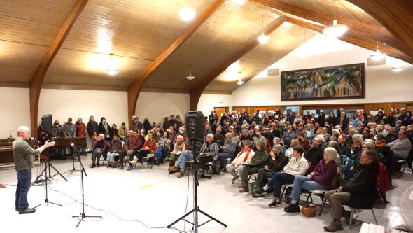 On Wednesday night, Jan. 14, around 250 villagers packed First Presbyterian Church’s Westminster Hall to mull over the future of Tom’s Market. It was a town hall hosted by the Yellow Springs Community Foundation, and the first public opportunity for local residents to weigh in on the possibility of the downtown grocery becoming a cooperatively operated market, or a co-op.