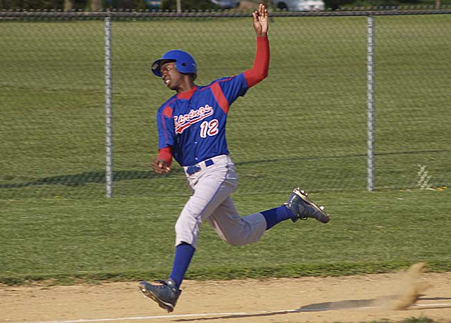 - Ameer Wagner was tagged out attempting to score in a play that gave the Bulldogs their only run in yesterday's game against Middletown Christian. The score was 15 to 1. (Photo by Nick Dudukovich)