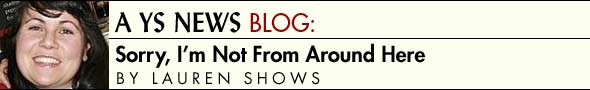 Yellow Springs is a town full of guerrilla art. From Clark Kent’s cast-off day wear to the fairies I remember seeing hidden on buildings during one of my first visits here to the yarn-and-flower bombing of any available public space to the decorated fry boxes handing around downtown, urging those who find them to “take something, leave something.” This town is, apparently, made out of people who want to make art that surprises, who want to make art that delights. This is a town of people who will give you a hug if you ask.