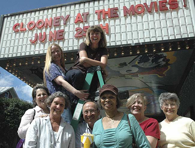 A group of Little Art Theatre supporters organized the theater’s first fundraiser, an auction gala, “Clooney at the Movies.” While the event is sold out, villagers can still buy raffle tickets to get a year’s worth of free movies. In the top row are Jenny Cowperthwaite-Ruka and Kipra Heerman, and in the bottom row, from left, are Dorothy O. Scott, Diane Foubert, John Geri, Alice Earl Jenkins, Maureen Lynch and Jane Scott. (Photo by Megan Bachman)