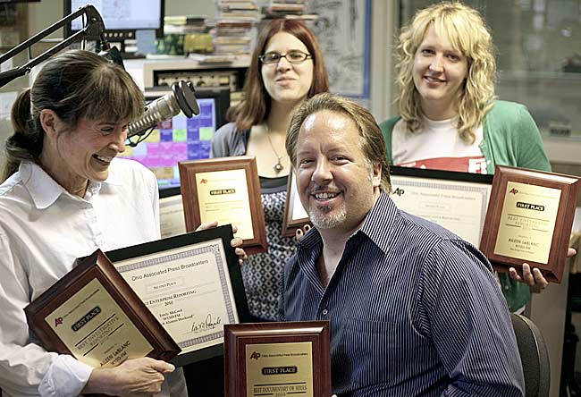 Local public radio station WYSO 91.3 brought home 10 awards from the Ohio Associated Press Broadcasters 2010 luncheon in Columbus on Sunday, June 6. WYSO’s news reporters Jerry Kenney, Emily McCord and Juliet Fromholt were recognized in six different categories among medium market sized stations and were joined by local free-lance reporter Aileen LeBlanc.