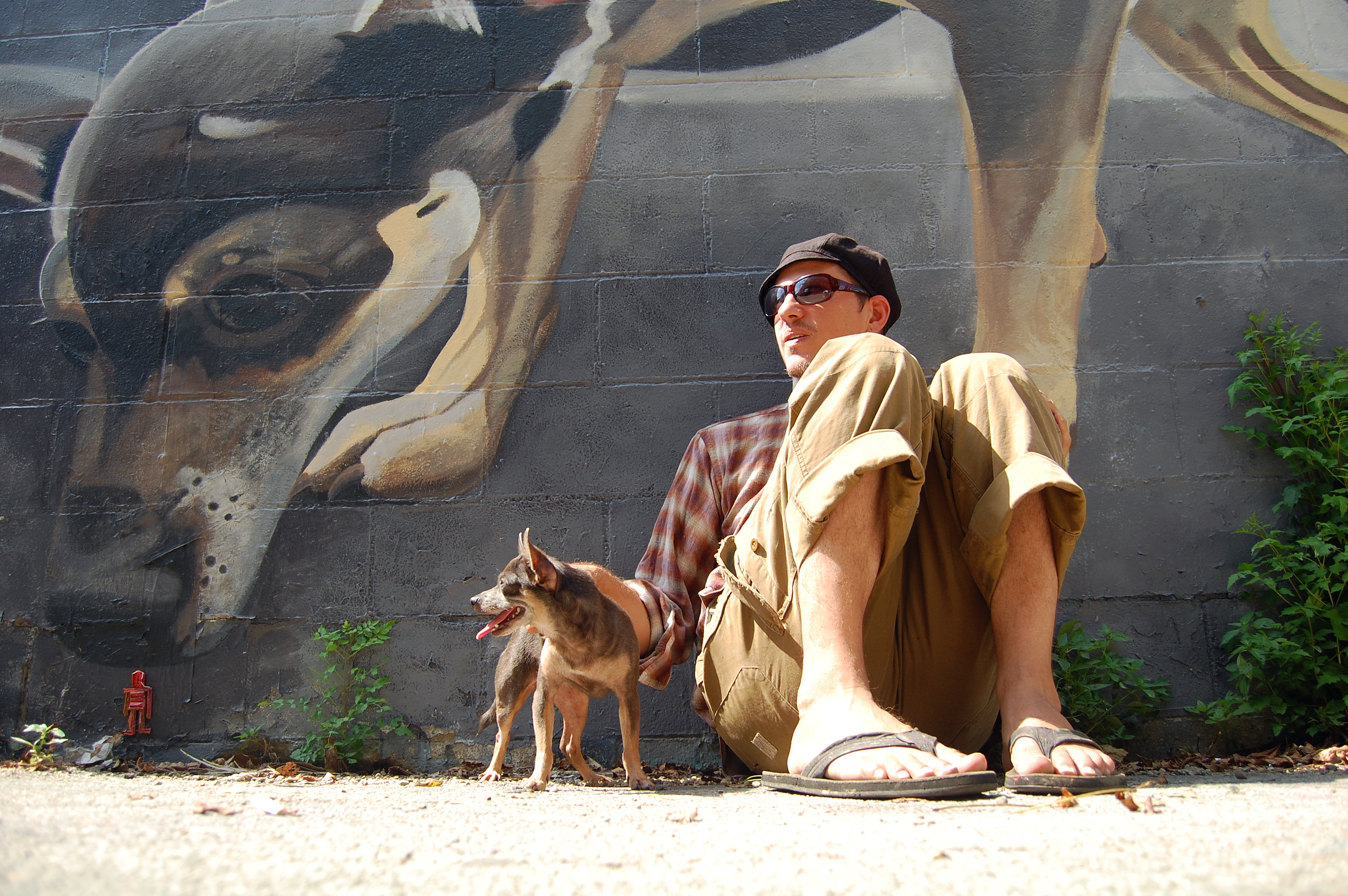 Pierre Nagley is a familiar presence in the alley. If you’ve ever stopped to admire the murals, chances are you have Pierre to thank. His most recent project is of his dog Beetoe, a Chihuahua that is a big hit with the townspeople despite its microscopic size.