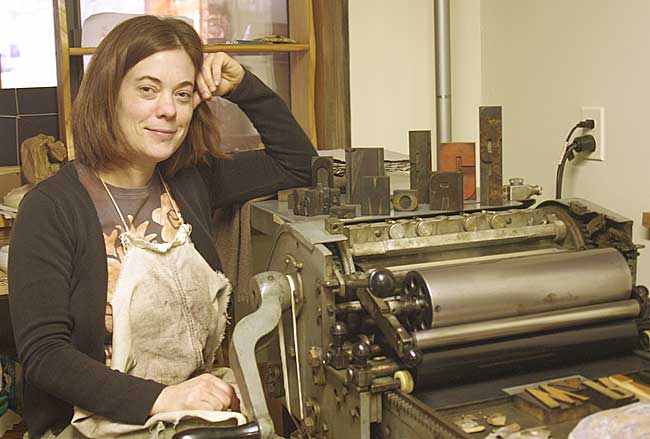 After moving to Yellow Springs she opened the StrongheArt Press and Studio at 143 East Limestone Street. StrongheArt is and will remain “a private press,” Strong said. Not marketing it commercially gives her the option to alternate between different projects, and “I really just like to keep it interesting,” said Strong, who also noted that she is “a mom first and foremost” and this affects how she structures her time. “I have to wait before my children are [grown] to be a starving artist,” she said.