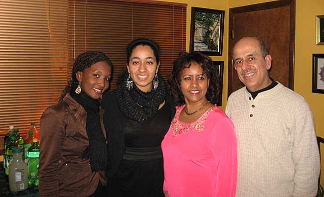 Espérance, left, a student from the Byimana School of Sciences in Rwanda, said goodbye to her host family, Savita, Saba and Vijay Bathija this week. Two students and a teacher spent three weeks in Yellow Springs, living with host families, attending school and trying activities such as skiing. They make the journey home today. (Submitted Photo)
