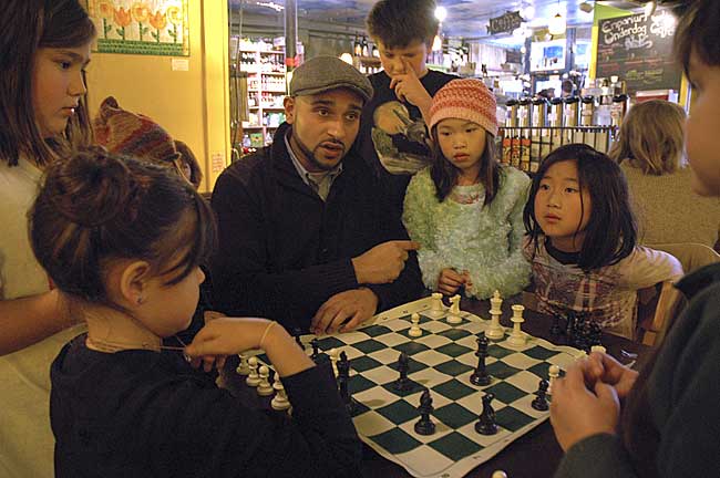 While chess conjures images of old Russian men hunched over tables in the park, Durrani, a 27-year-old athletic-looking older brother, somehow makes chess seem hip. He praises players for their strengths and is careful to make space for the quiet ones too. They play chess as a group, helping each other to find the smart moves, and they always end with something akin to a sports huddle.