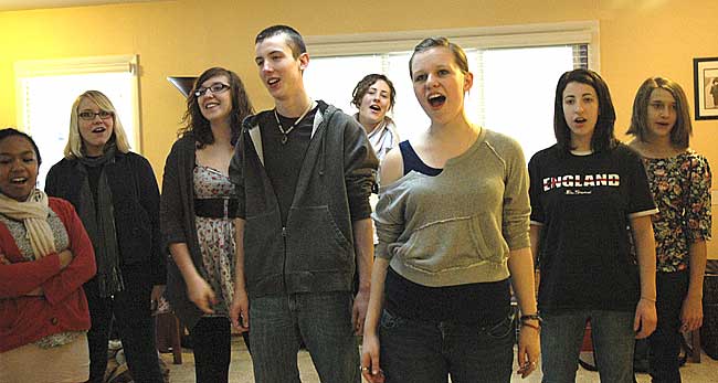 Yellow Springs seniors Lauren Westendorf and Donavan Berends will present as their senior project a musical review of song and dance this Saturday, Feb. 5, at 2 p.m. at the Mills Lawn auditorium. A group of theater students, including Lydia Jewett, left, will perform Broadway favorites at the event, which is a fundraiser for the high school theater arts program. Tickets are $5. (Photo by Kelsey Cundiff)