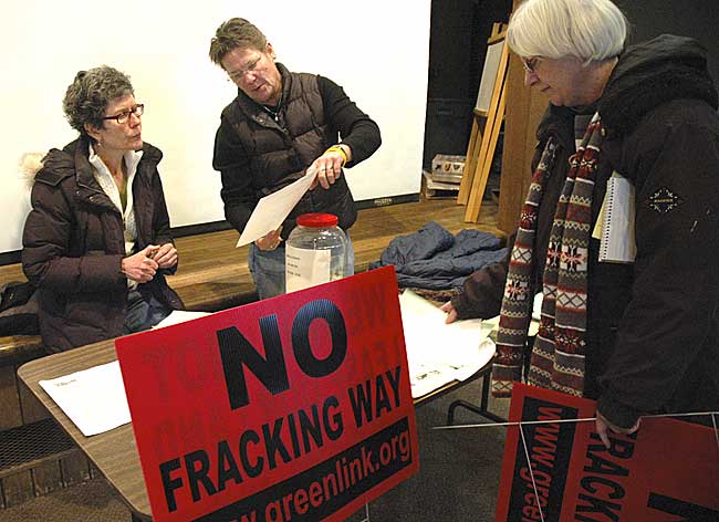 “What kind of economic benefits are worth the destruction of the environment, for life?” asked Dimi Reber, who was among 60 people who attended a Green Environmental Coalition meeting last Saturday, with many expressing concern that fracking, also called hydraulic fracturing, might be used to drill for natural gas in the area.
