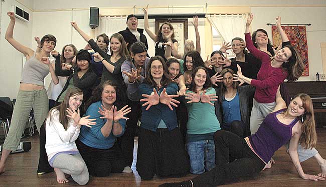 More than 50 local dancers will perform original pieces at the Yellow Springs Community Dance Concert on Friday and Saturday, March 25–26, at 7 p.m. at Antioch’s South Gym. Dancers at a recent rehearsal are, in the front row from left to right, Emma Sturm, Theresa Thinnes, Lara Bauer, Andrea Hutson, Anna McClure, Tricia Gelmini, Erin Wolf; middle row, Jade Turner, Kira Plumer, Savanna Amos, Jennifer Johnson, Victoria Walters, Carrie Speck, Nicole Manieri, Marybeth Wolf, Miriam Eckenrode; back row, Acala Cresci, Greta Hill, Aaron Logan, Amanda Hanisch, Ali Thomas and Charlotte Walkey (obscured). (Photo by Megan Bachman)
