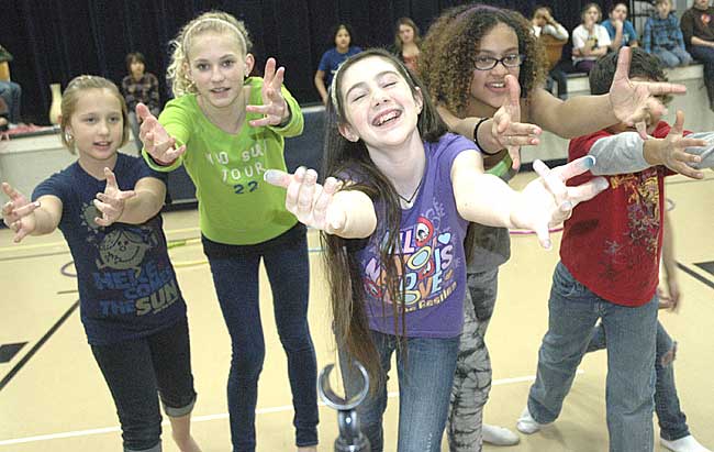 Bollywood comes alive in the colorful saris the players wear, the classical Bharatanatyam dance style and the music that Guru Das will perform with his tablas and sitar during the show. The Indian immersion unit all 340 students at Mills Lawn have engaged in the past two weeks at school has served to stylize the production and contextualize the themes in the story. Smitha Magal gave a teacher workshop in classical Indian dance, which was then choreographed by Valerie Claggett for the show. Students in third grade “traveled” through India last week, going from classroom to classroom trying forms of yoga, playing the Indian game of chess and wearing Indian textiles. The younger students sampled traditional Indian food made by village resident Al Pana Sharma.