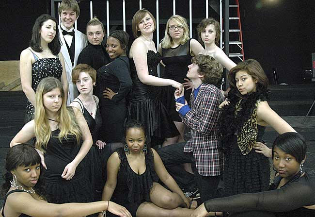 The Yellow Springs High School drama club will open its spring musical, Chicago, this weekend at the Mills Lawn Auditorium, with performances on Friday and Saturday at 8 p.m. and on Sunday at 2 p.m. Senior cast members are, in the back row, from left to right, Liana Rothman, Elliot Cromer, Anne Weigand, Malaika Halley, Lauren Westendorf, Lydia Jewett and Emma Holman-Smith; middle row, Julia Tucheslau, Miranda Russell, Adam Zaremsky and Bella Hernandez; front row, Natasha Perry, Zyna Bakari and Stephanie Scott. (Photo by Megan Bachman)
