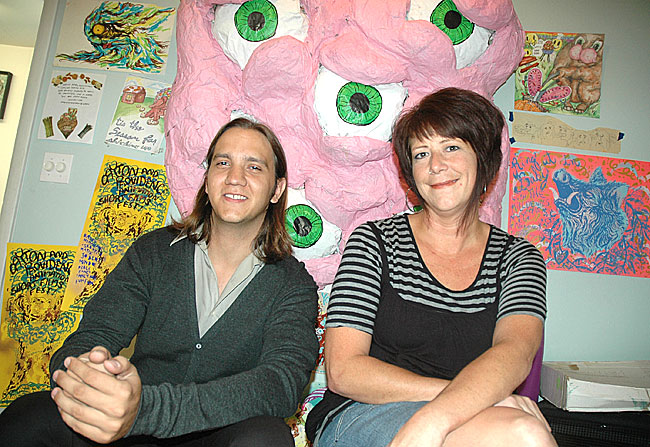 Johnson, a mixed-media artist on glass who recently joined with Paul Baker of Basho Apparel as a co-owner of the screenprinting shop, helps to arrange monthly guest artists whose designs are featured on Basho clothing. Basho is doing well from its space above the Winds, where the business recently relocated, Johnson said.