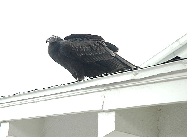 However, his Raptor Center keepers were concerned that Tiny was becoming too comfortable with humans, and would never learn to live in the wild. He was captured on Tuesday by the Miami Township Fire Department and returned to the center. Tiny had been at the center since July, when he was left in a box on the doorstop of a Humane Society in Highland County, then only a white fluffy baby. He since gained considerable size and changed to black, although he was not yet old enough to have the red head of an adult turkey vulture.