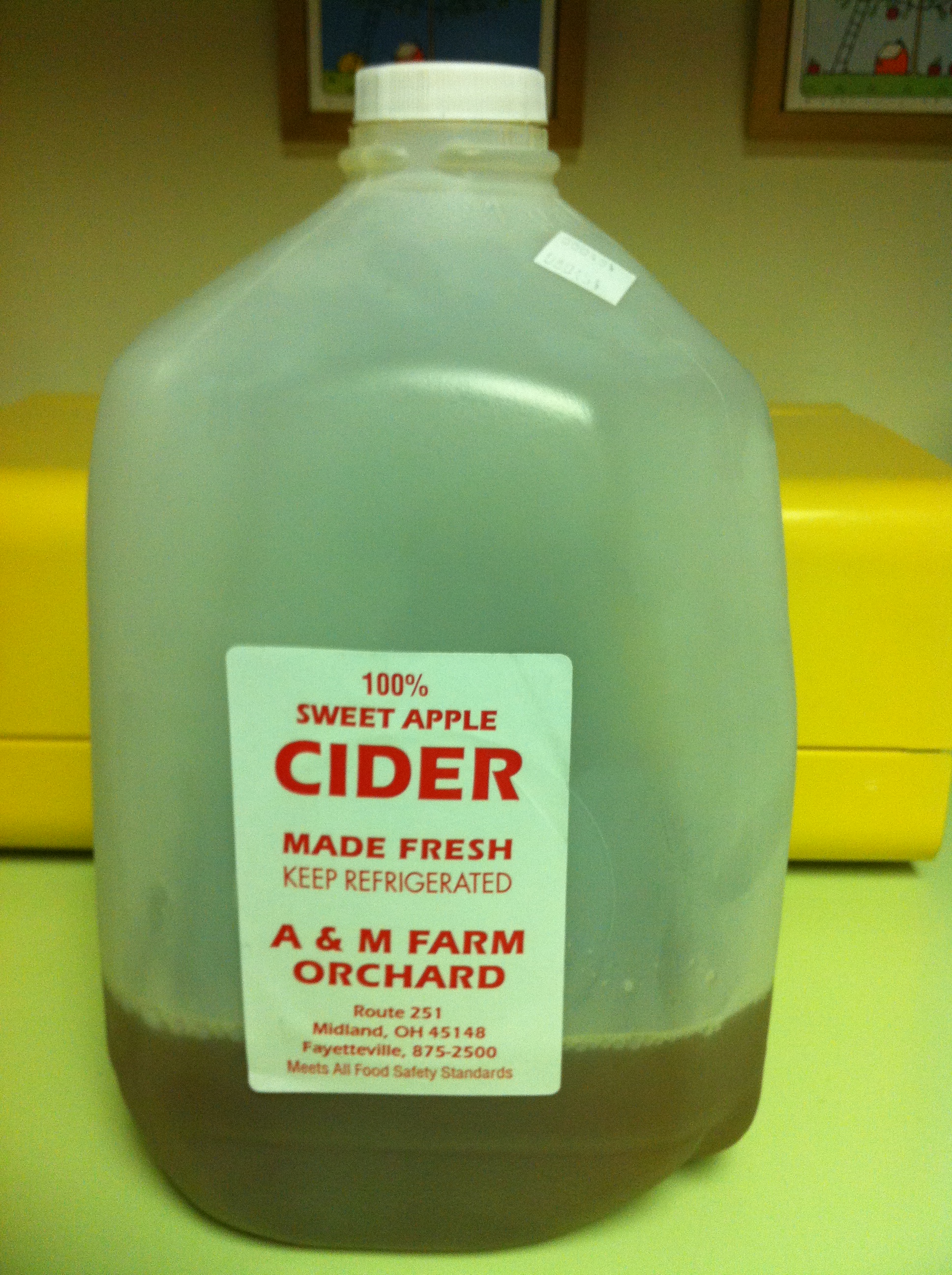 It’s true: I am, as it happens, in Cider Town, in that I have relatively easy access to the best cider there is, in my opinion. I don’t claim to be a cider expert by any means, but in the last couple of years I’ve tasted a few, and I, along with Anthony, have found my favorites. Each fall, when the fancy strikes us, we can pop down the road to Yellow Springs’ own Peifer Orchards for a few gallons, not to mention a cup of their frozen cider and a few pounds of their honeycrisp apples for general munching. On Saturday mornings, we can also get our other favorite cider from A&M Orchards, sold by Jackson’s at the Kings Yard Farmers Market. In falls past, when Jackson’s hasn’t had cider to sell at the farmers market, we’ve made the drive out past Xenia to the Jackson’s storefront. And when they were out, we’ve happily driven more than an hour out to A&M Orchards in Midland, where I recently enjoyed a superb caramel apple on a stick; it always seems like such a hassle to engage in the eating of a caramel apple, but I have yet to regret taking that particular plunge.