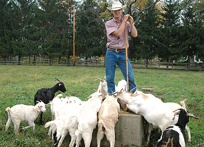 The herd of 25 goats spend most of their time at home on Whitehall Farm, where Betts moved last year with his wife, Chanel, and three children from Ventura, Calif. In the herd are 12 pregnant does, alpha female Broken Horn, loner Jimmy the Buck and other goats named by Betts’ children — among them Suzie, Big Whitey, Banshee, Treehouse and Ziggy.