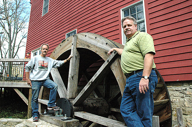 Hammond wants more people to see the mill as a monument to the long milling history of the Little Miami River. The mill was first built in 1812 as a gristmill for making grain flour from corn and wheat. The original mill stones and some of the pulleys and gears are assembled just as they would have been 200 years ago when a reverse paddle wheel (which Hammond rebuilt according to old photographs) was powering the operation. The mill also illustrates the advancement of technology that turned the inefficient paddle wheel into a turbine, that by the turn of the century was using the water’s power to grind almost six times as fast as before, Hammond said.