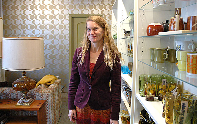 Village resident Valorie Claggett recently opened her store of vintage and retro furnishings, Modern Salvage, at 138 Dayton Street. Claggett, an architect, designer and historical preservationist, will stock the store with unique and simple modern items from estate sales, garage sales and thrift stores. (Photo by Megan Bachman)