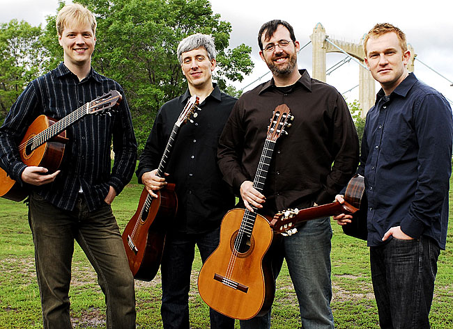 A pioneer in establishing the guitar quartet as a legitimate chamber music form, the Minneapolis group has been together for 25 years, and is considered to be at the top of its field. Founder Joe Hagedorn won the Guitar Foundation of America solo competition in 1990 and Ben Gateno won the Andres Segovia award. Other group members are Steven Newbrough and Wade Oden.