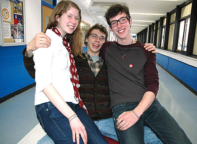 The Yellow Springs High School One-Acts, featuring student-written and student-directed plays, will be held at 8 p.m. on Friday, Feb. 17, at the Mills Lawn auditorium. This year’s playwrights of original one-acts are, from left, Lois Miller, Colton Pitstick and Rory Papania. This year, the plays will be supplemented with a variety show. (Photo by Megan Bachman)