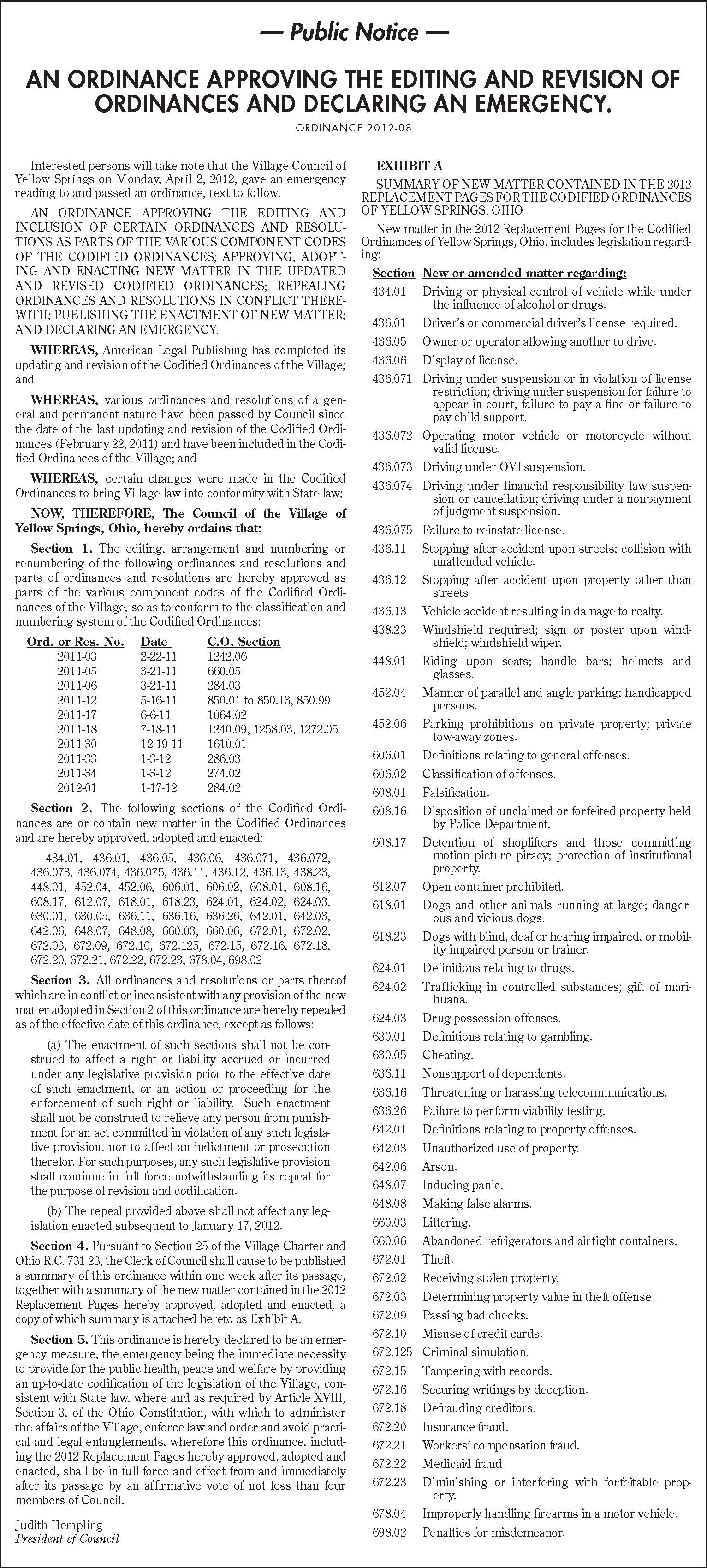 A celebration of life service will be held for Peter Whitson on Saturday, Jan. 31, 2–3:30 p.m. (His obituary appeared in the YS News on Dec. 5, 2025.) The service will be held at the Unitarian Universalist Fellowship, 2884 U.S. 68, about two miles south of the village.