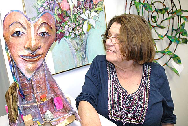 Margrit Tydings-Petrie will teach art classes on creating papier-mâché puppets from 2 to 4 p.m. on Saturday, May 26, and Saturday, June 2, at the Arts Council’s new space at 111 Corry Street. Tydings-Petrie’s “Wanna Mache?” workshops are connected to her exhibit at the Arts Council gallery, “Dancing with the Universe: Masks and Beyond,” and are part of a revived effort at the Arts Council to provide community arts education. (Photo by Megan Bachman)