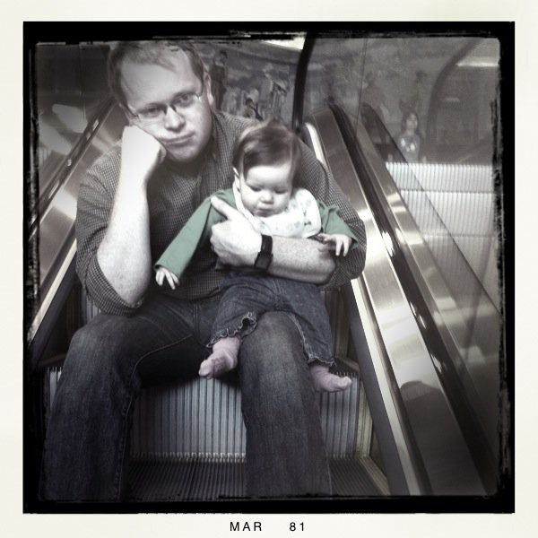 In my estimation, Anthony is the epitome of dad-ness: that is to say, he works his butt off at it. When I told him, tremulously, that he would soon join the ranks of father-dom, his first response was to hug me and assure me that we were going to be an excellent trio. What this meant for him was being an equal schemer in the caper that has been the raising of our daughter, Lucy. Since her birth, Anthony has tackled the challenges and relished the joys like somebody with a serious mission. The baby’s hungry? He’ll shove that spoon full of pureed peas into her face with a vengeance. She’s just soiled her diaper so hard that it shot up her back? He’s got the wipes ready and the tub filled, and why don’t I go sit on the couch and watch Star Trek? Sounds good, chief. He’s instituted a rule for himself which states that, at any point, when Lucy brings him one of her books and places it in his hands, he must stop whatever he’s doing immediately and read it to her. This means that he can now recite the full text of Good Night Moon in his rich baritone to a room full of seasoned listeners with perfect accuracy. He has also become quite skilled at diverting Lucy’s chatter to more suitable topics should she choose to remember and repeat one of those colorful words she’s heard Mommy exclaim on occasion.