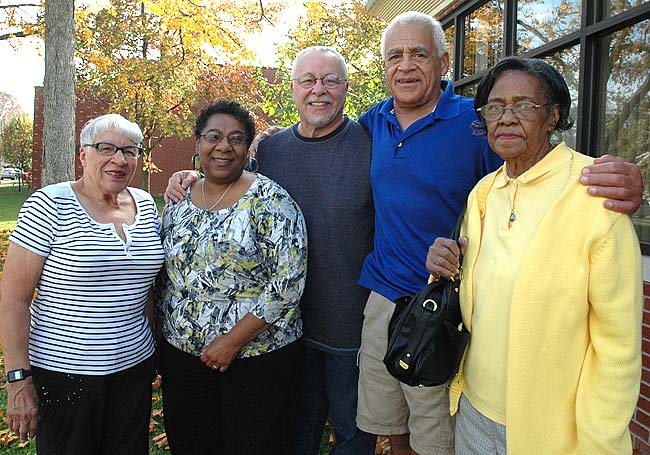 A panel of native Yellow Springers will discuss the significant role African Americans have played in the making of Yellow Springs and other issues at a free forum on Monday, Oct. 29, from 7 to 9 p.m. at Antioch University Midwest. From left are panelists Betty Ford, Sharon Perry, David Perry, Kingsley Perry Jr., and Isabel Newman. (Photo by Megan Bachman)