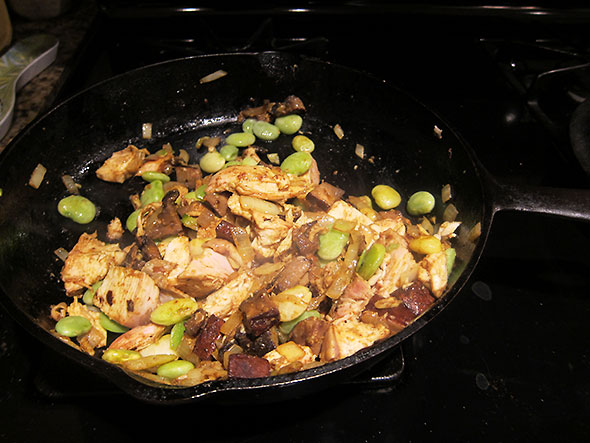 Salt to tastePlace the oil in a skillet on medium to medium low heat. Toss in onion and stir fry to tenderness. Add the crushed garlic cloves and about a 1/4 tsp salt. Once the curry powder nicely coats the onions, add the diced mushroom and chicken in turn. Stir fry until the mushroom becomes tender. Add the frozen lima beans, stir in, and cover the skillet to cook the beans and preserve the dish’s moisture. When the beans turn bright green and before they turn yellow, remove the dish from the heat and serve.