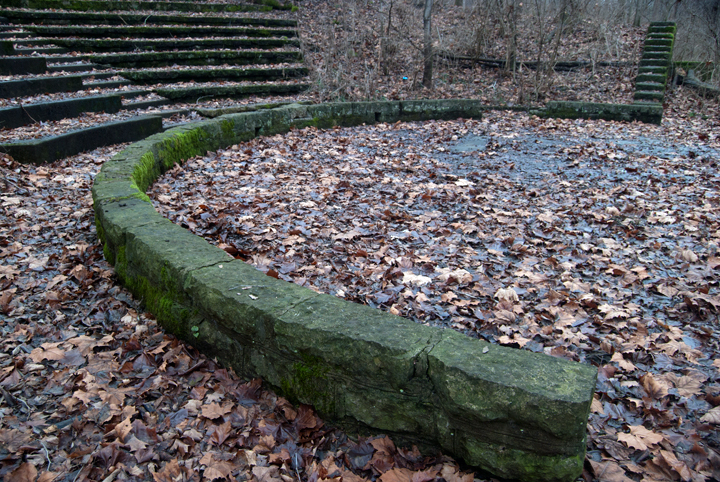 For the very curious, there is a surprise waiting behind the pottery building at the John Bryan Community Center. A stone amphitheater sits nestled in the woods like a sacred shrine, evoking a sense of mystery and intrigue. There is not much concrete information on the origins of the theater. People have reported using it in various ways over the years, but nothing has been formally documented. The theater remains an enigmatic piece of local history.