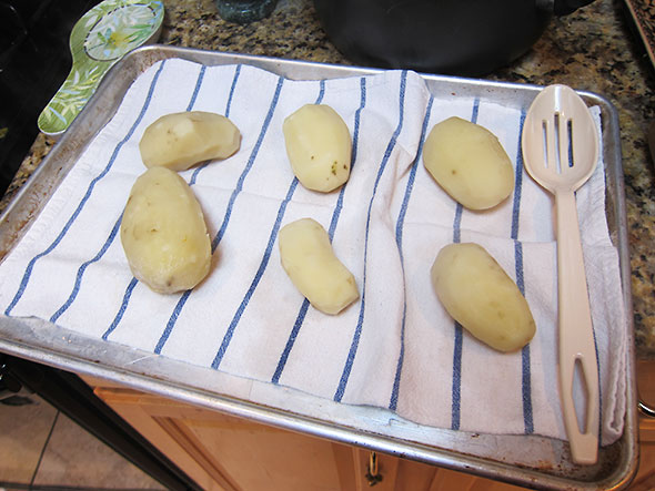 I had managed to tick off a few to-do’s when the kids caught me checking the New York Times webpage. They literally piled over my shoulder as I read the highlights. I clicked off the page’s video feed in a foolish attempt to distract them and got drawn in myself. The lead video featured Mark Bittman. Lately, he has been demonstrating simple recipes in Haven’s Kitchen, a recreational cooking school in New York City (Aside: Yellow Springs needs a school like this!). Friday’s video was a special treat: Mario Batali joined him to demonstrate a recipe for gnocchi with butternut squash. I broke into our stash of summer potatoes directly.