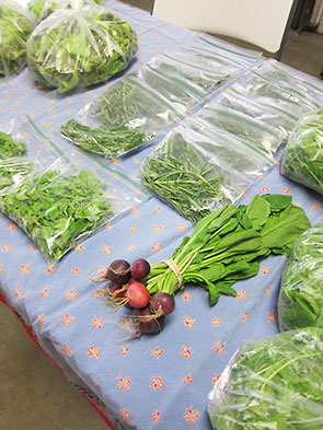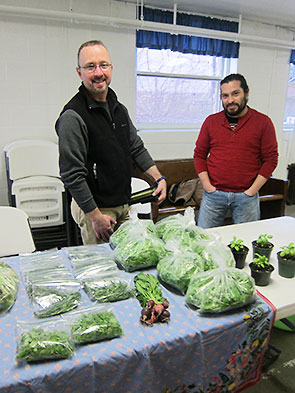 At 9 am sharp, earlybird customers stream into the winter market on South Winter Street. These early customers are generally looking for salad and winter greens and were pleasantly surprised to find two new produce vendors. The Yellow Springs Winter Farmers Market, 202 S. Winter Street, is actively recruiting anyone with a greenhouse and extra greens to bring to market. Moonshadow Farm—a new recruit—came back for their second week. They did a fast business offering swiss chard and microgreens. Swiss chard has long been popular and disappeared quickly. The microgreens are new to the winter market and proved a hot item also.