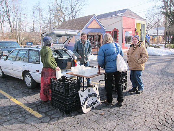 In Kings Yard, Peach Mountain Organics returned for a second week offering bags of mixed greens and pea shoots. As long as the sun continues to shine, the markets in Kings Yard and the fellowship hall of the United Methodist Church will run in parallel until the end of March. Then the winter market will complete its annual run and hand off to the spring market. I find it an exciting time experiencing the land’s reawakening through the transition from the winter greens to spring’s munchy crunchy fare.