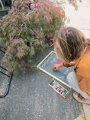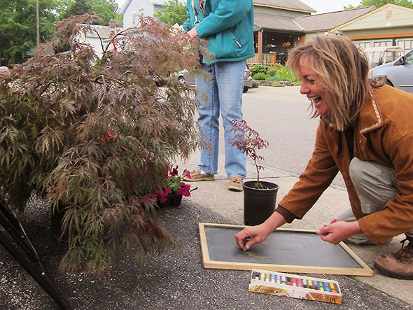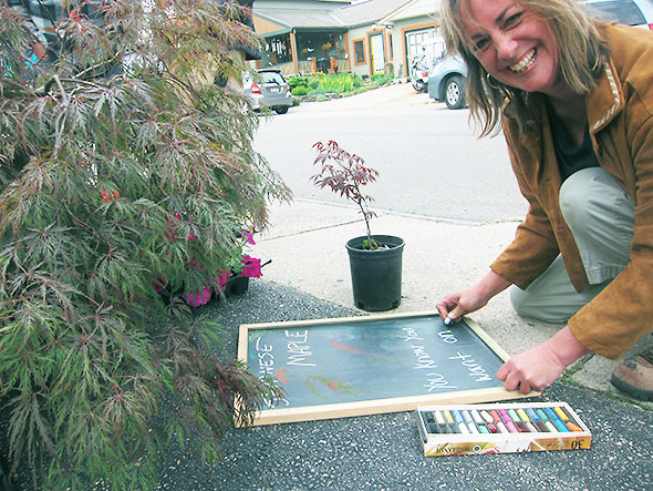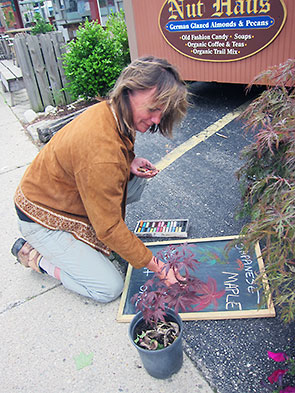 I met up with Jenny Haack herself at the Saturday Farmers Market hosted at the Corner Cone, 101 S Walnut St. She was working on a chalkboard highlighting the day’s featured offering: beautiful, low lying Japanese maple plants. One of these graceful trees stands among my front yard landscaping. Drought tolerant and hardy, it’s a popular plant in this area, and Jenny joked that she was in danger of selling out before the sign was finished.