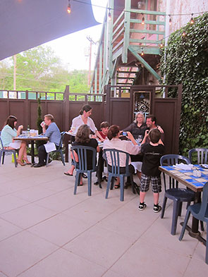The new patio has a special place in my heart already. It is by chance the site of my sweetest memory one perfect weekend in the year 2003. Ten years ago, my husband and I got married in the upstairs room at the Winds Wine Cellar. I threw my wedding bouquet from the top of the fire escape, and my favorite wedding pictures were taken in front of the ivy wall. Owners Mary Kay Smith and Kim Rose Korkan—with the able assistance of Nadia Malarkey and Tommaso Gregor—have honored that space and now reveal its magic to others.