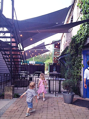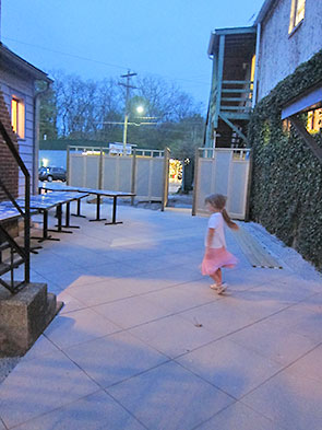As the new order took shape, the interim chaos had its griefs as well as its fascinations. My five year old was a little wistful about the changes underfoot as we explored the outside renovations at the Winds Cafe, 215 Xenia Ave. Great piles of gravel and stacks of huge pavers were marveled over, but we also reminisced about the days and nights we spent on the back patio tucked into that secret garden of dogwood, ivy, and stone.
