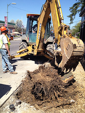 The operator commanded the excavator’s boom with the dexterity of a puppeteer, and the machine seemed crouched in its task like a living breathing thing. Under the persuasion of its great arm, old concrete and tree roots gave way for a new order.