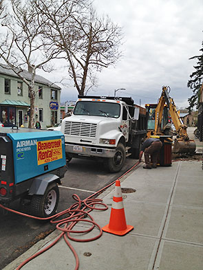 My two year old has been watching the installation of the new sidewalk on Xenia Avenue with great interest. Transfixed, for a couple days in a row he parked himself in the big picture window of Dino’s Cappuccinos, 225 Xenia Ave, to watch the main action. The noise from the jack hammer and excavator might well have been music to his ears. He’d take my hand to draw us as close as he dared.