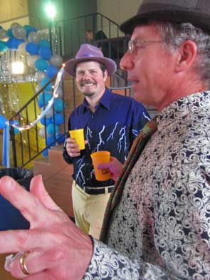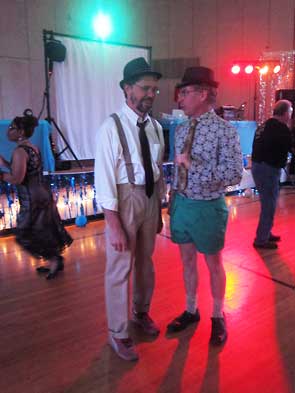 The inspiration for the event appears to be one apricot leisure suit owned by Jon Horvath. His wife Karla led the charge organizing—after what seems a 40+ year wait—a fitting venue for the ultracool suit. The stage was set at the Bryan Center gymnasium decked in silver and bulldog blue. Shane Creepingbear spun tunes old school on vinyl, and a snack table was loaded with twizzlers, pretzel sticks, and mouthwatering cupcakes by Harvest Moon Creations. In one corner were piles of bean bags, in another a cash bar, and in a third the official photographer ready to capture couples in their vintage satin, red-carpet silhouettes, fedoras, filmy silks, fiery meringue, pencil ties, crinoline, polka dots, tuxedos, sequins, and paisley.