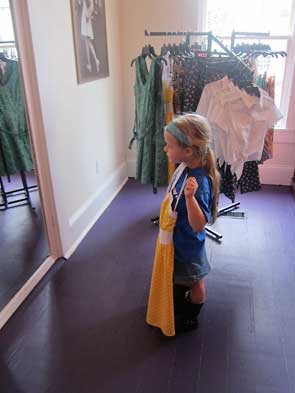 Not four hours before, I bought our tickets. On a pure leap of faith, I picked up a pair at Iona, the new dress boutique at 232 Xenia Ave. My 5 year old daughter came with me and, after buying the tickets, the two of us lingered to try on Kira Lugo’s pretty dresses. I had been to the Fairfield Mall earlier in the week but had been mightily disappointed in the quality: nothing I looked at would withstand 15 minutes of dancing let alone 5 hours. Iona’s boutique put the department stores to shame: in cut, color, quality, and downright character.