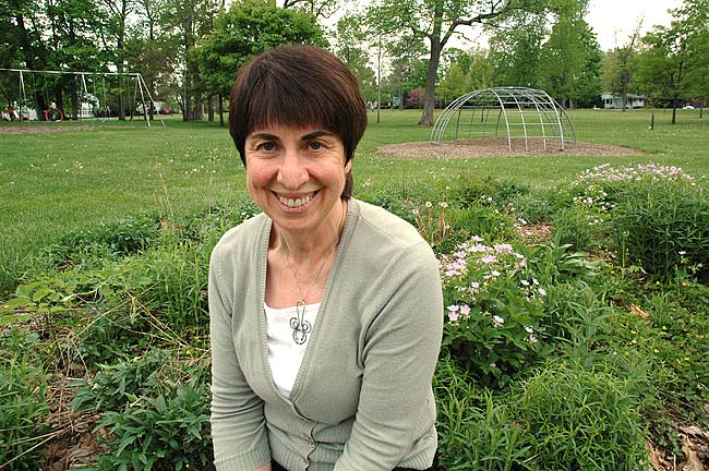 Ellen Guest retires after 35 years in the Yellow Springs School District. A first and second grade teacher at Mills Lawn for the last 12 years, Guest encouraged nature observation and incorporated project-based learning into the classroom. Guest is pictured at one of the many gardens she planted with students at Mills Lawn. (Photo by Megan Bachman)