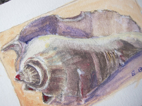 A week ago, Sherryl and I poured over the pieces as she prepared them for framing. The wide range of subjects, moods, and media is impressive as well as the exceptional standard met in execution. We chuckled over the various forms of delivery. Submissions arrived crated in boxes of wood and cardboard, wrapped in ziplock bags, or sandwiched into lightly padded envelopes. One spare commercial envelope offered a window and tantalizing glimpse of a masterpiece by Pam Geisel entitled “Home Tweet Home”.