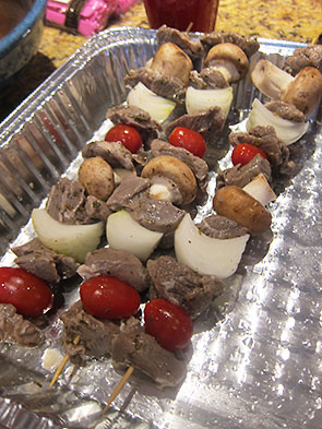 My five year old is now my six year old. We celebrated my daughter’s birthday this week in an evening party for her best buds and their families. We invited families over for dinner and cake. Dinner we kept kid friendly and simple: steamed string beans, cooked brown rice, and grilled kabobs of mushrooms, onion, cherry tomato, and lamb marinated in spiedie sauce.