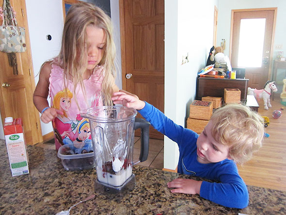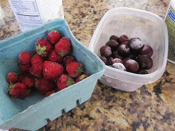 Yesterday, we broke into our store of frozen fruit to make the cherry berry smoothies.