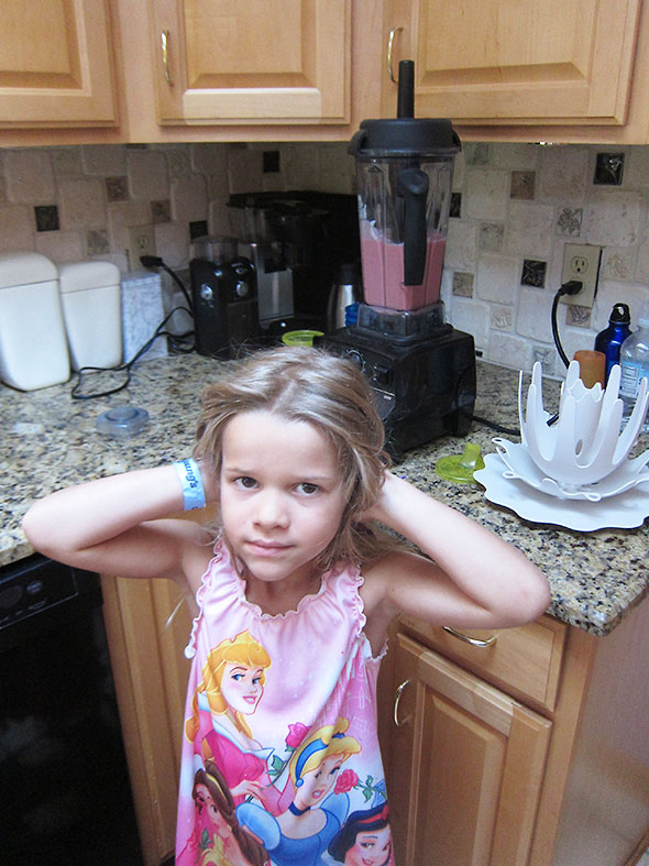 I suspect her tummy. The rest made it into the freezer along side some local strawberries also destined for a future smoothie.