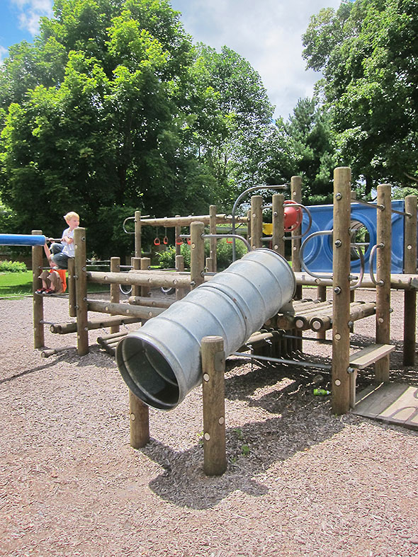 We stayed for hours. Known as simply “The Wee” in our family, our kids have been sailing down and through the Big Toy’s slides, poles, loops, and barrels ever since they were old enough to navigate the log platforms. When they were still infants, I could hover close spotting while they’d make their way across, element by element, intimidated but intrigued by the genuine challenge before them.