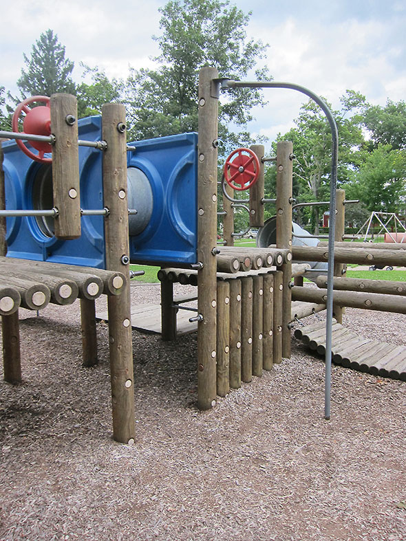 The new playset is almost as different from the Big Toy as the sets I played on as a child. Four decades ago, our big toys looked—as a friend put it yesterday—suspiciously like plumbing. The Big Toy could almost be accused of the same, its complex set of pipes cloaked in wood.