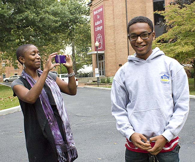 Michelle Davis captured a photo of her son, Ishan, on the Antioch College campus as the first-year student moved in last week. Allen is one of the 97 new students in the class of 2017. The college population doubled to around 200 with the arrival of its third class since reopening. (Submitted photo by Dennie Eagleson)