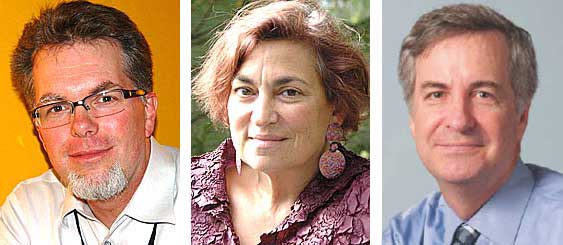 All experts in their particular fields, from left, neuroscientist Mike Weisend, race theorist Judith Ezekiel and Lincoln afficionado Mark Roosevelt, are three Yellow Springs residents among the 30 who will present at TEDx Dayton on Nov. 15. Registration for the knowledge conference closes Thursday, Oct. 31. (Photos by Lauren Heaton except far right by Dennie Eagleson)