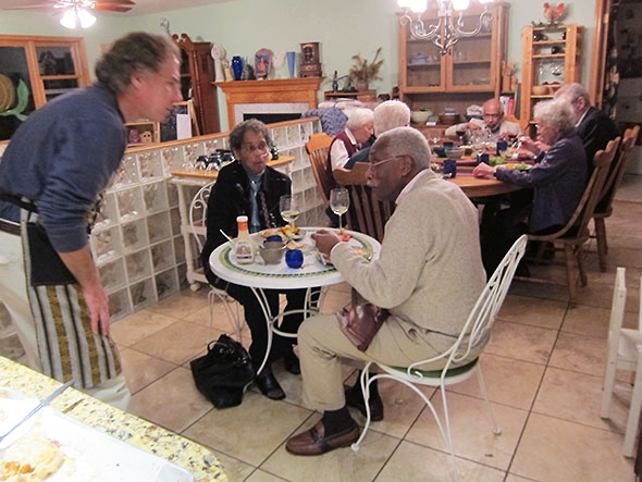 When Beth Bridgeman approached me to host one of the night’s dinners, I first considered turkey as the main dish; but, on second thought, a roasted bird was too ambitious. I had a two hour window—6:45pm until 8:45pm—in which to serve and satisfy six guests with a fittingly special meal. The planned meal must either come together quickly or dramatically fail with a respectable space of time to recover. Hmmm.